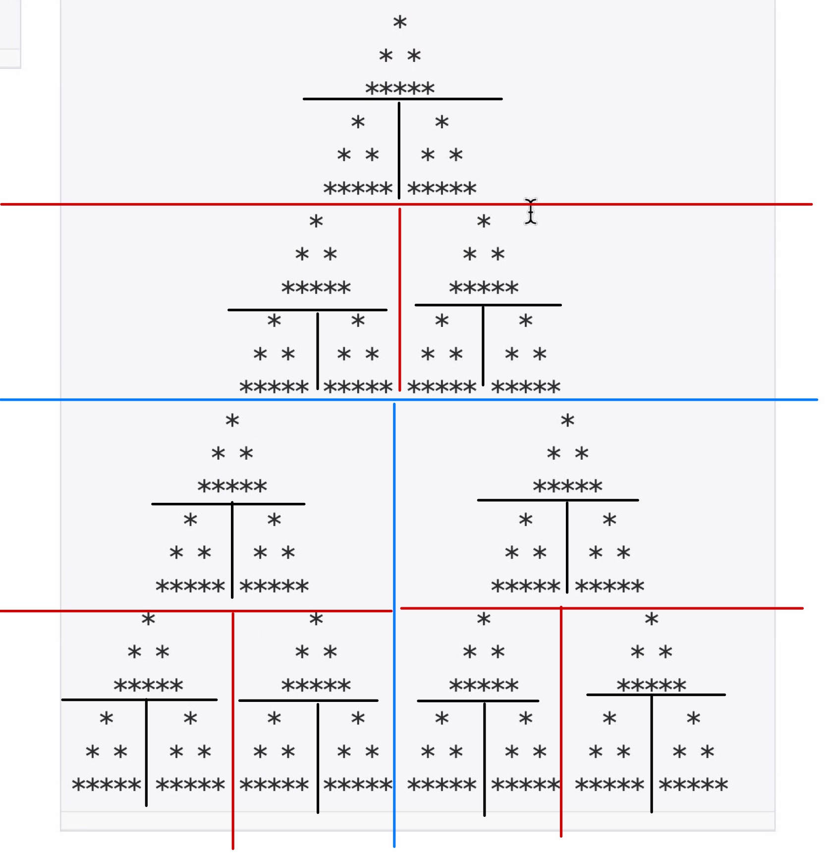 그림에서 보면 먼저 파란선을 기준으로 3부분으로 나눠지고 나눠진 상태에서 빨간 선으로 3부분 ... 그안에서 또 검은선으로 3부분 ...
