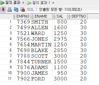 SELECT EMPNO, ENAME, SAL