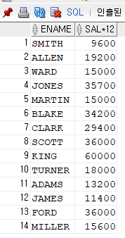 SELECT ENAME, SAL*12